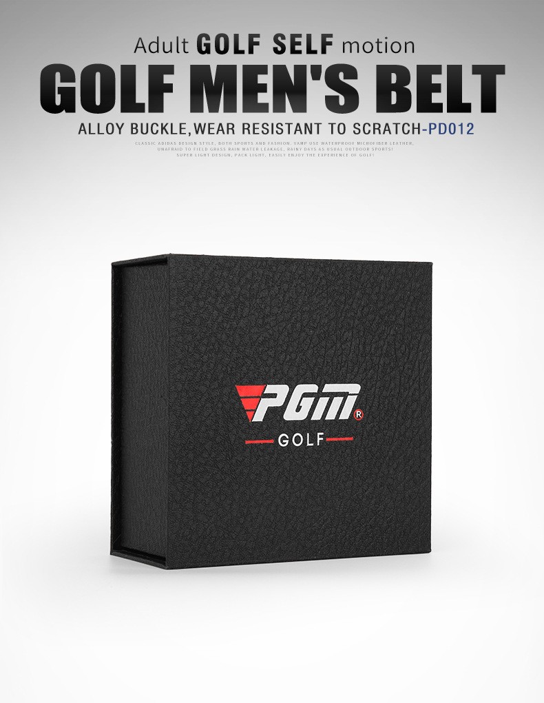 Thắt lưng golf nam PGM PD012 chính hãng được làm bằng chất liệu sợi da siêu bền, chất lượng cao. Khóa kim loại mạ chống gỉ, thiết kế vô cùng đặc đáo và thu hút giúp các quý ông tự tin trên sân golf.