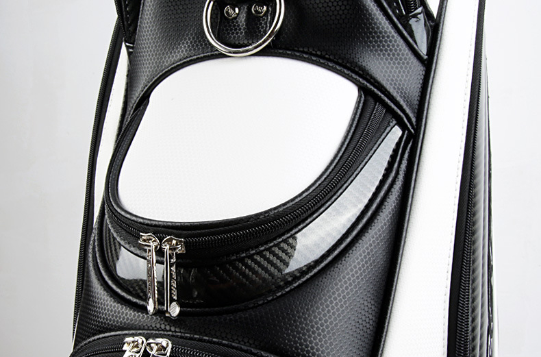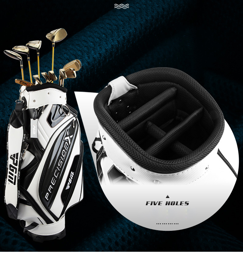 - Miệng túi rộng, có tới 5 ô cài gậy ngăn tách riêng biệt, đựng được tối đa 15 gậy, đủ cho Golfer mang tất cả các gậy cần thiết lên sân.